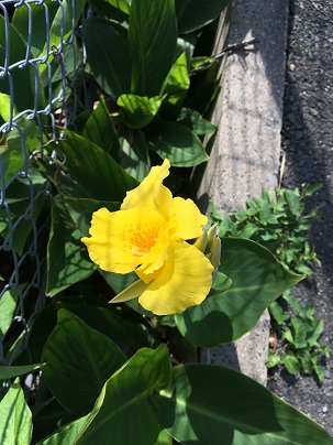 麓にはオシロイバナとカンナがきれいな花を咲かせていました。