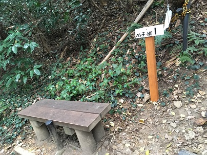 ところどころにある休憩用のベンチには、ベンチ番号が付けられていました。