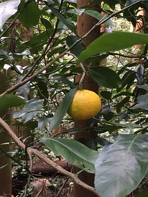 石峠から三郎丸登山口へ向かう登山道の脇には、柑橘系の木が大きな実をたくさんつけていました