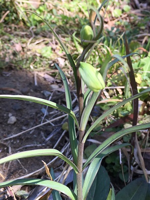 山麓の貯水池?付近には、5株ほどのバイモが蕾を付けていました