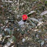 山頂広場では真っ赤なヤブツバキの花が咲き始めていました