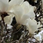 山麓の民家の庭先のハクモクレンはたくさんの花を咲かせていました