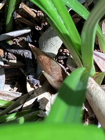 山麓の尾降神社のシュンランの花芽