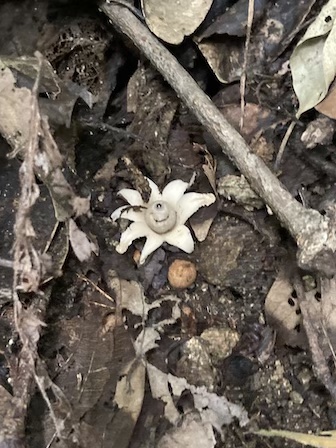 1本のキヌガサタケが登り時には傘を開げ始めていましたが、下り時には綺麗に開いていました