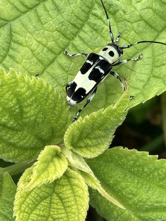 登山道脇の葉っぱにとまっていたラミーカミキリ
