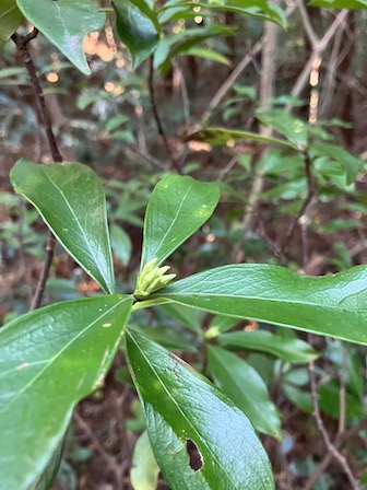 石峠経由の登山道脇ではコショウノキの花の蕾が膨らみ始めていました