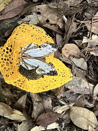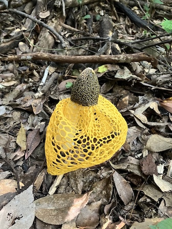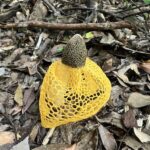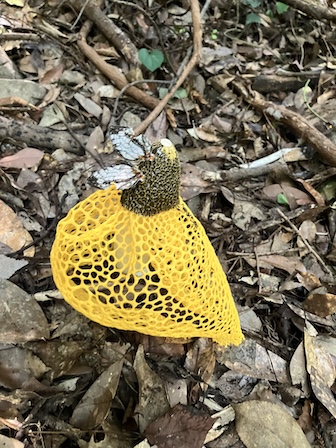 登山口MT付近では大型のウスキキヌガサタケが顔を出していました