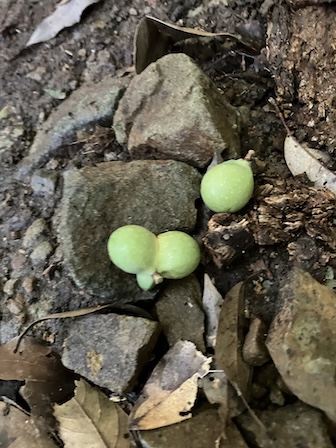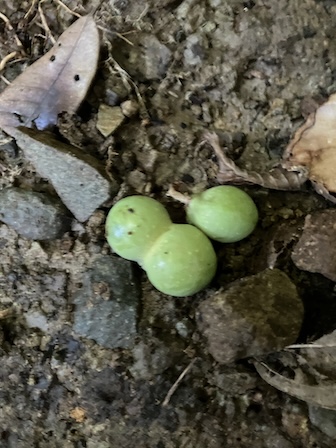2025年8月14日(木) 投稿日 2025年8月16日投稿者 nandenn 登頂:65回目 山頂の様子 この日は晴れていましたが視界のほうはイマイチでした 木の実 登山道に落下していた木の実 センニンソウ 山麓のため池付近ではセンニンソウの花が咲き始めていました