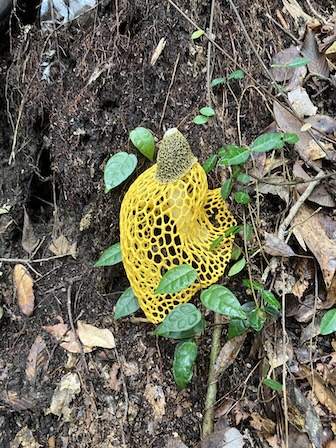 2025年9月11日(木) 投稿日 2025年9月13日投稿者 nandenn 登頂:74回目 山頂の様子 この日は晴れのお天気で視界のほうはまあまあでした ウスキキヌガサタケ 自然道(山頂から50m)付近では久々にウスキキヌガサタケが顔を出していました 黄色い大きなキノコ 山頂広場脇で見かけた黄色い大きなキノコ シロツチガキ 十本杉付近で見かけたシロツチガキ ミズヒキ 山麓のため池付近で見かけたミズヒキ