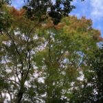 山頂広場手前の自然道脇の色はイロハカエデは紅葉が始まっていました