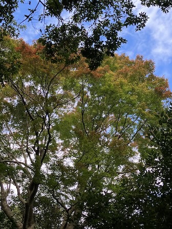 山頂広場手前の自然道脇の色はイロハカエデは紅葉が始まっていました