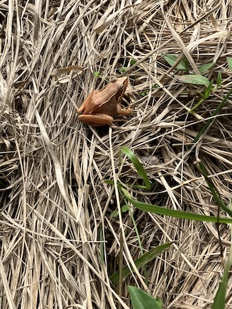 登山道脇で見かけた大きなヤマアカガエル