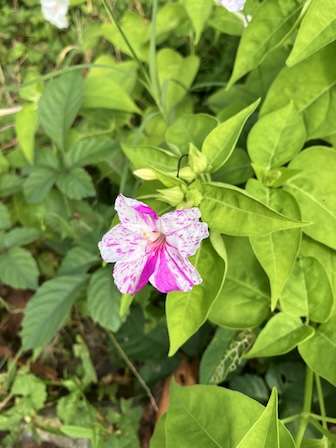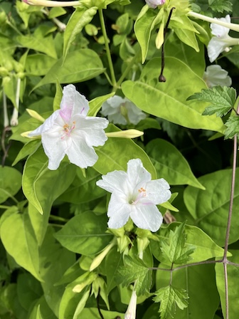 山麓の民家の庭先で見かけた珍しい色?のオシロイバナ