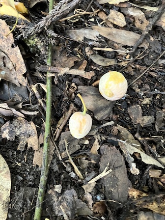 2025年10月27日(月) 投稿日 2025年10月29日投稿者 nandenn 登頂:87回目 山頂の様子 この日は曇り時々晴れのお天気で視界のほうはイマイチでした ツワブキ 山頂広場や登山道脇ではちらほらとツワブキの花が咲いていました ノコンギク 山頂広場ではたくさんのノコンギクが咲いていました ウスキキヌガサタケ 根上近くの看板付近の大木の根元に小型のウスキキヌガサタケが顔を出していました ギンナン 山麓のイチョウの大木の周辺にはたくさんの銀杏が落ちていました