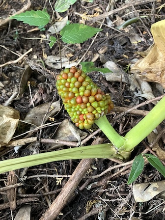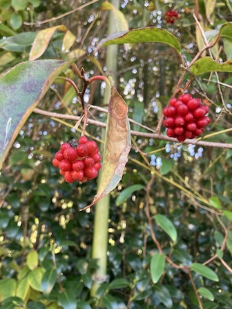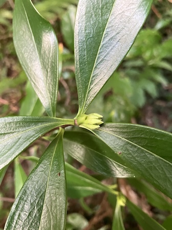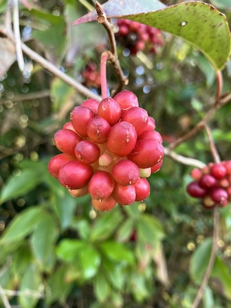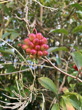 2025年11月23日(日) 投稿日 2025年11月27日投稿者 nandenn 登頂:97回目 山頂の様子 この日はよく晴れたお天気で視界のほうもまあまあでした コショウノキ 三郎丸登山道脇のコショウノキはたくさんの花芽を付けていました ムサシアブミ 山麓の尾降神社付近ではムサシアブミの実が色付いていました サネカズラ 山麓の小川付近で見かけた真っ赤なサネカズラの実