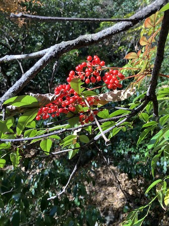 自然道脇で見かけた真っ赤に色づいたナンテンの実